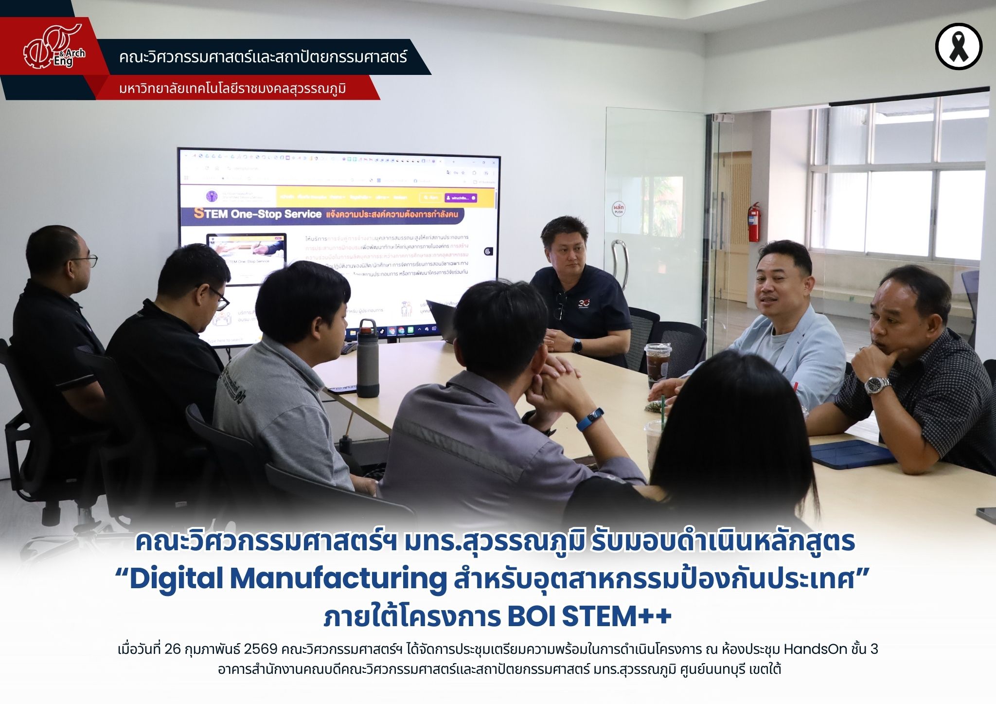 คณะวิศวกรรมศาสตร์ฯ มทร.สุวรรณภูมิ รับมอบดำเนินหลักสูตร “Digital Manufacturing สำหรับอุตสาหกรรมป้องกันประเทศ” ภายใต้โครงการ BOI STEM++