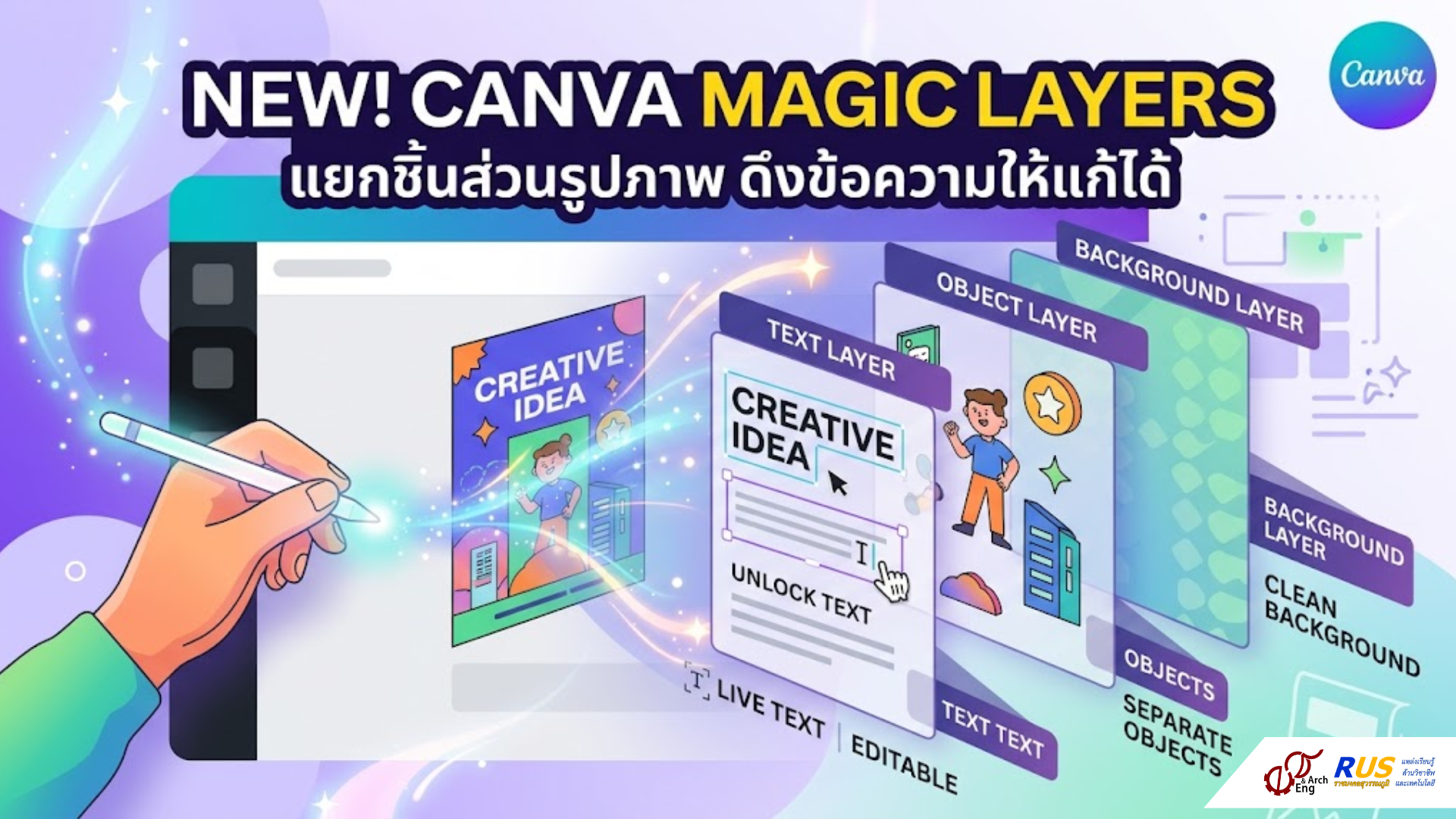 Magic Layers คือฟีเจอร์ที่ขับเคลื่อนด้วย AI (Canva Design Model) ซึ่งทำหน้าที่รับรูปภาพแบบแบนราบ (Static Image) อย่างไฟล์ PNG หรือ JPG เข้าไป แล้วทำการ "แยกชิ้นส่วน" องค์ประกอบต่างๆ ในภาพให้ออกมาเป็นเลเยอร์ที่แก้ไขได้ (Editable Layers) เสมือนว่าคุณสร้างโปรเจกต์นั้นขึ้นมาทีละชิ้นใน Canva ตั้งแต่แรก