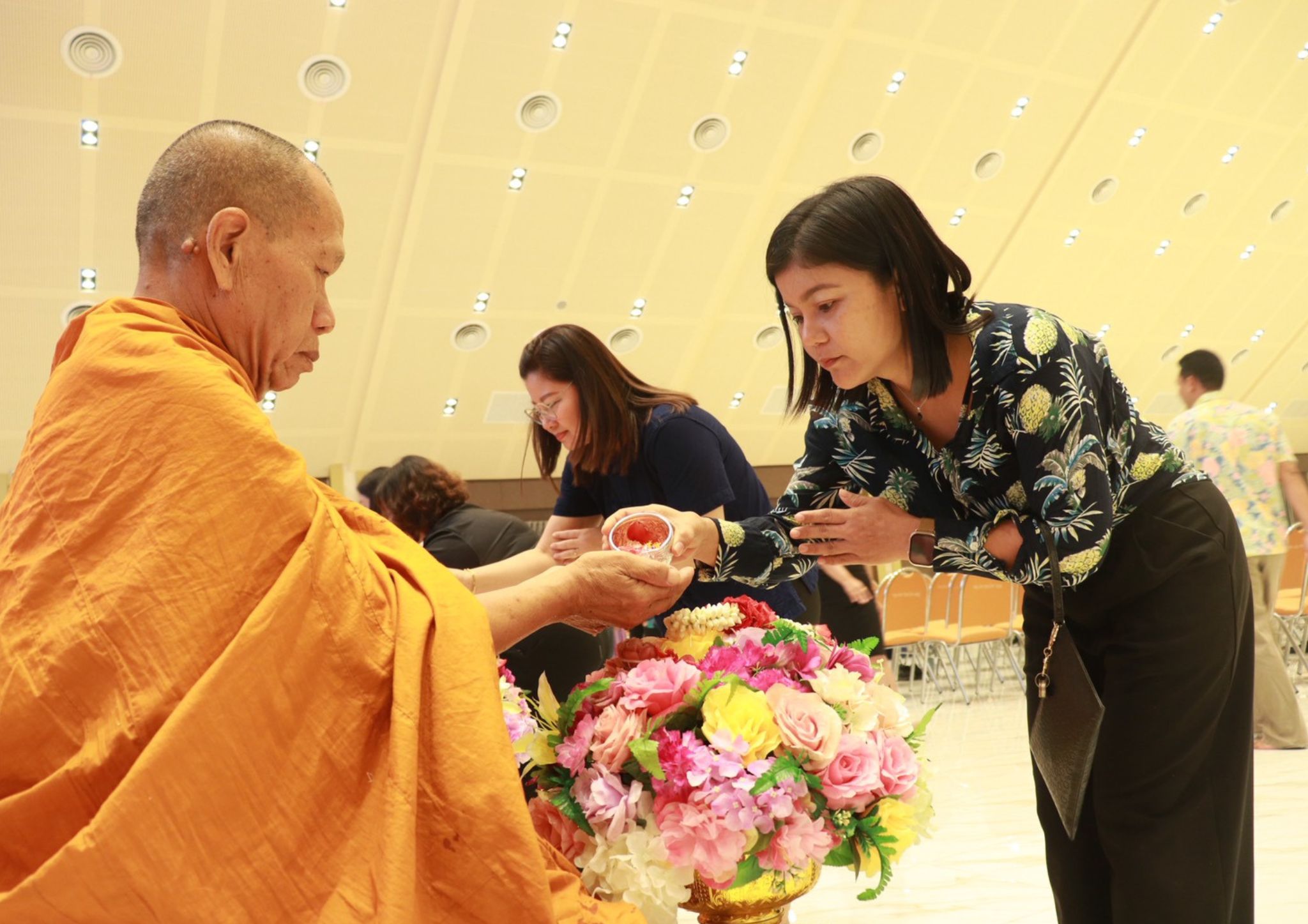 วันพฤหัสบดีที่ 9 เมษายน 2569 คณะวิศวกรรมศาสตร์และสถาปัตยกรรมศาสตร์ มหาวิทยาลัยเทคโนโลยีราชมงคลสุวรรณภูมิ นำโดย รองศาสตราจารย์ ดร.ณัฐวุฒิ อินทบุตร ผู้ช่วยคณบดี พร้อมด้วยคณาจารย์และเจ้าหน้าที่ เข้าร่วมโครงการทำนุบำรุงศาสนา ศิลปะ และวัฒนธรรม เพื่อสืบสานประเพณีไทย เนื่องในช่วงเทศกาลสงกรานต์ ณ หอประชุมสุพรรณภูมิ มทร.สุวรรณภูมิ ศูนย์สุพรรณบุรี ภายในงานจัดพิธีเจริญพระพุทธมนต์ และถวายภัตตาหารแด่พระสงฆ์ เพื่อความเป็นสิริมงคล จากนั้นมีพิธีสรงน้ำพระ และกิจกรรมรดน้ำขอพรจากผู้ใหญ่ เพื่อส่งเสริมให้บุคลากรได้ร่วมกันอนุรักษ์วัฒนธรรมไทย ปลูกฝังความเคารพต่อผู้ใหญ่ และสร้างความสัมพันธ์อันดีภายในองค์กร