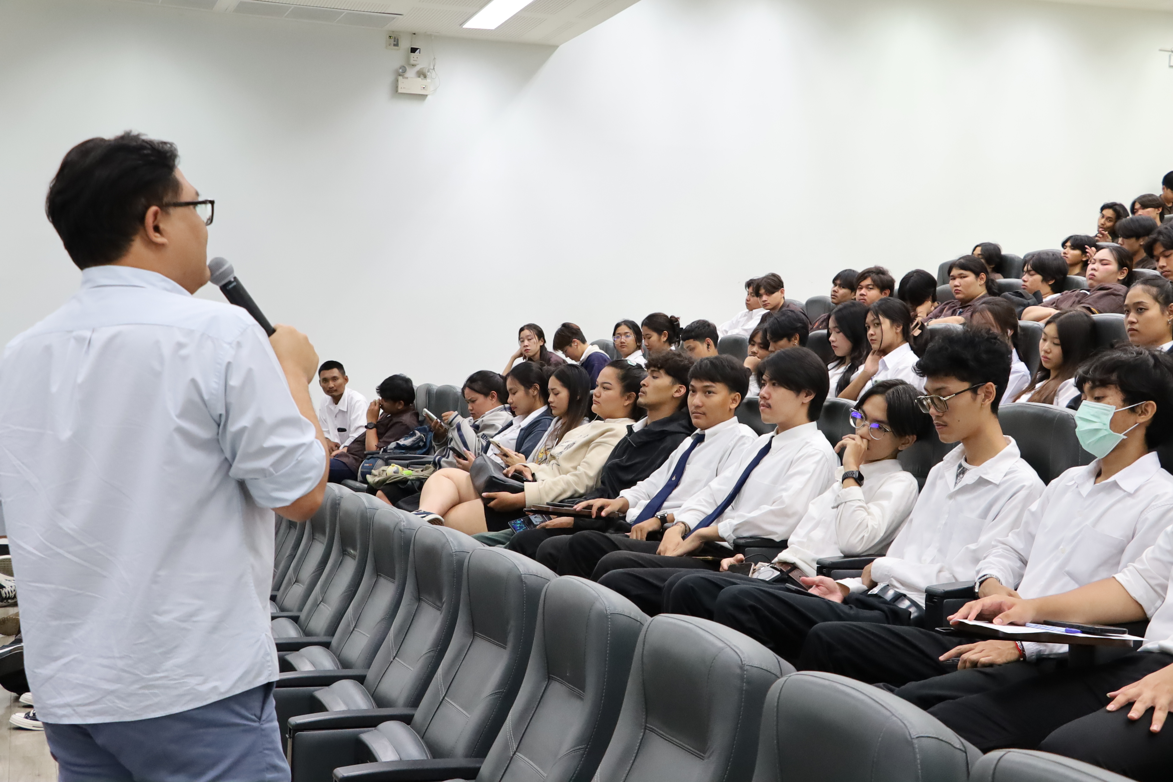 โดย ผู้ช่วยศาสตราจารย์พัชระ กัญจนกาญจน์ คณบดีคณะวิศวกรรมศาสตร์ฯ ได้มอบหมายให้ ผู้ช่วยศาสตราจารย์ทวีศักดิ์ ศรีจันทร์อินทร์ รองคณบดีคณะวิศวกรรมศาสตร์ฯ เป็นประธานเปิดกิจกรรม พร้อมด้วย รองศาสตราจารย์ ดร.ยุทธนา กันทะพะเยา และดร.กฤษณะ จิรสารสวัสดิ์ รองคณบดีคณะวิศวกรรมศาสตร์ฯ ร่วมบรรยายให้ความรู้ความสำคัญของการพัฒนาตนเองทั้งในด้านวิชาการ จริยธรรม และความรับผิดชอบในฐานะนักศึกษา นอกจากนี้ ยังมีกิจกรรม พบอาจารย์ที่ปรึกษาเพื่อพูดคุย แลกเปลี่ยนความคิดเห็น ให้คำปรึกษาเกี่ยวกับการเรียน การใช้ชีวิตและการวางแผนอนาคต ส่งเสริมให้นักศึกษามีความเข้าใจตนเองและสามารถปรับตัวได้อย่างเหมาะสม