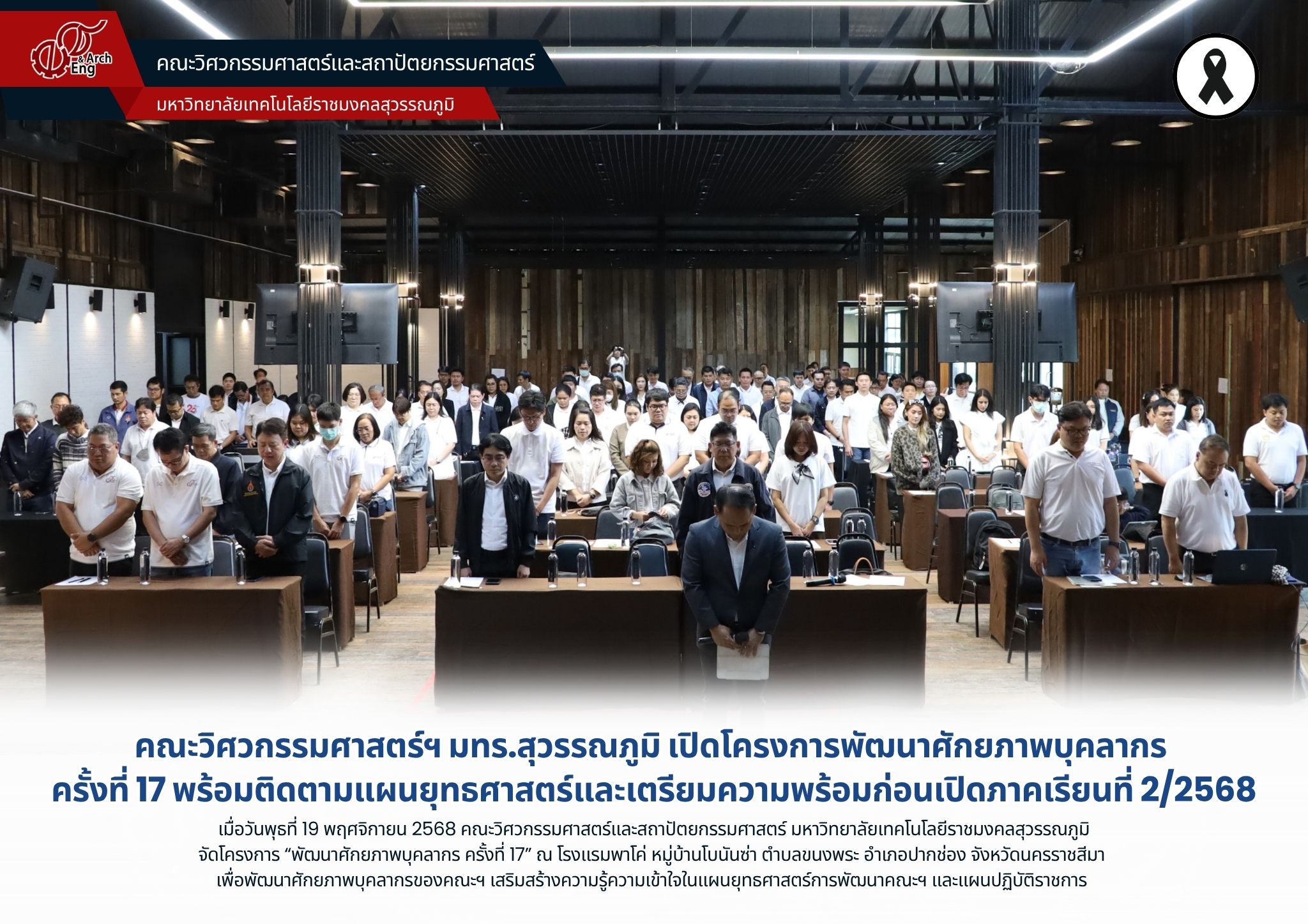 คณะวิศวกรรมศาสตร์ฯ มทร.สุวรรณภูมิ เปิดโครงการพัฒนาศักยภาพบุคลากร ครั้งที่ 17 พร้อมติดตามแผนยุทธศาสตร์และเตรียมความพร้อมก่อนเปิดภาคเรียนที่ 2/2568