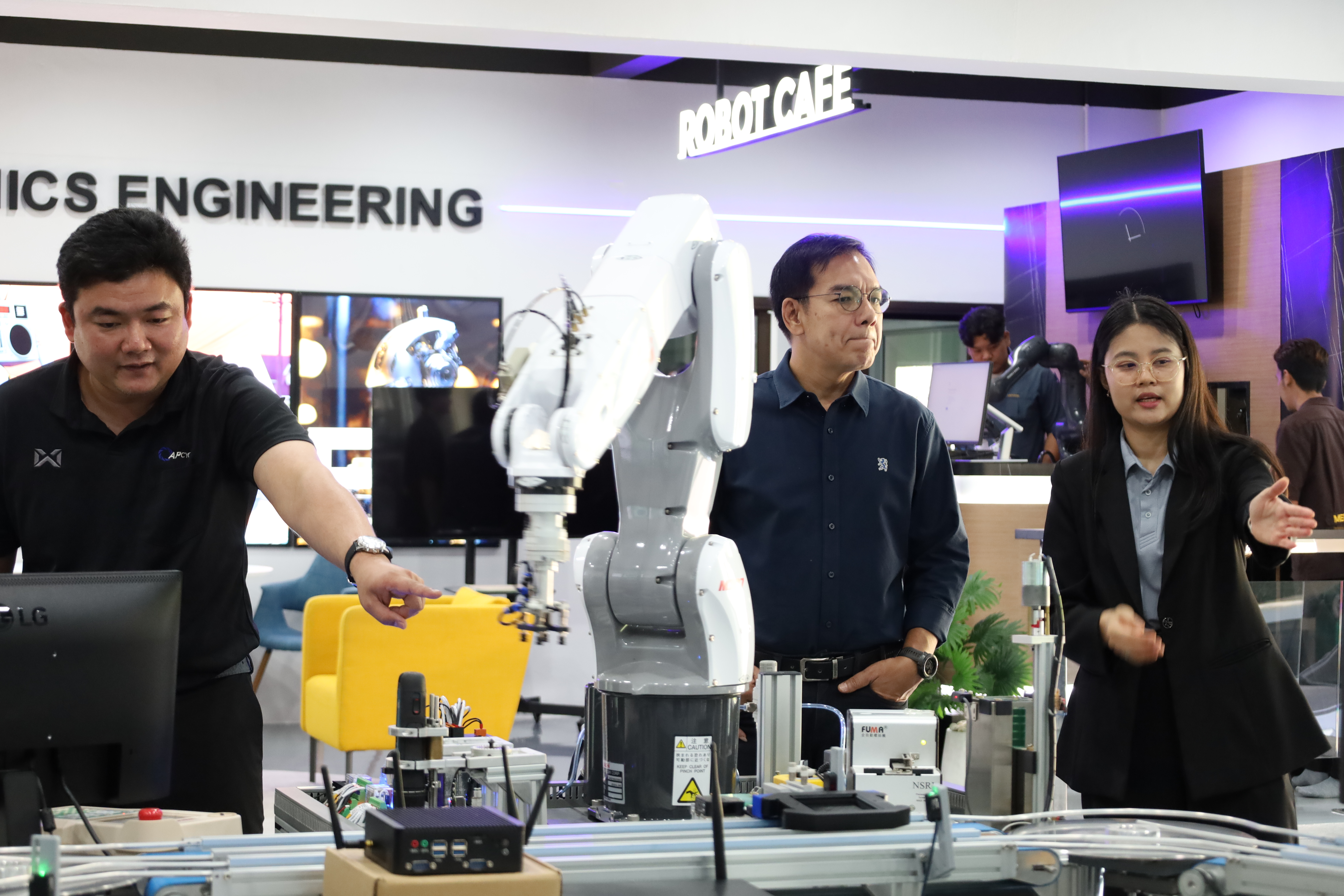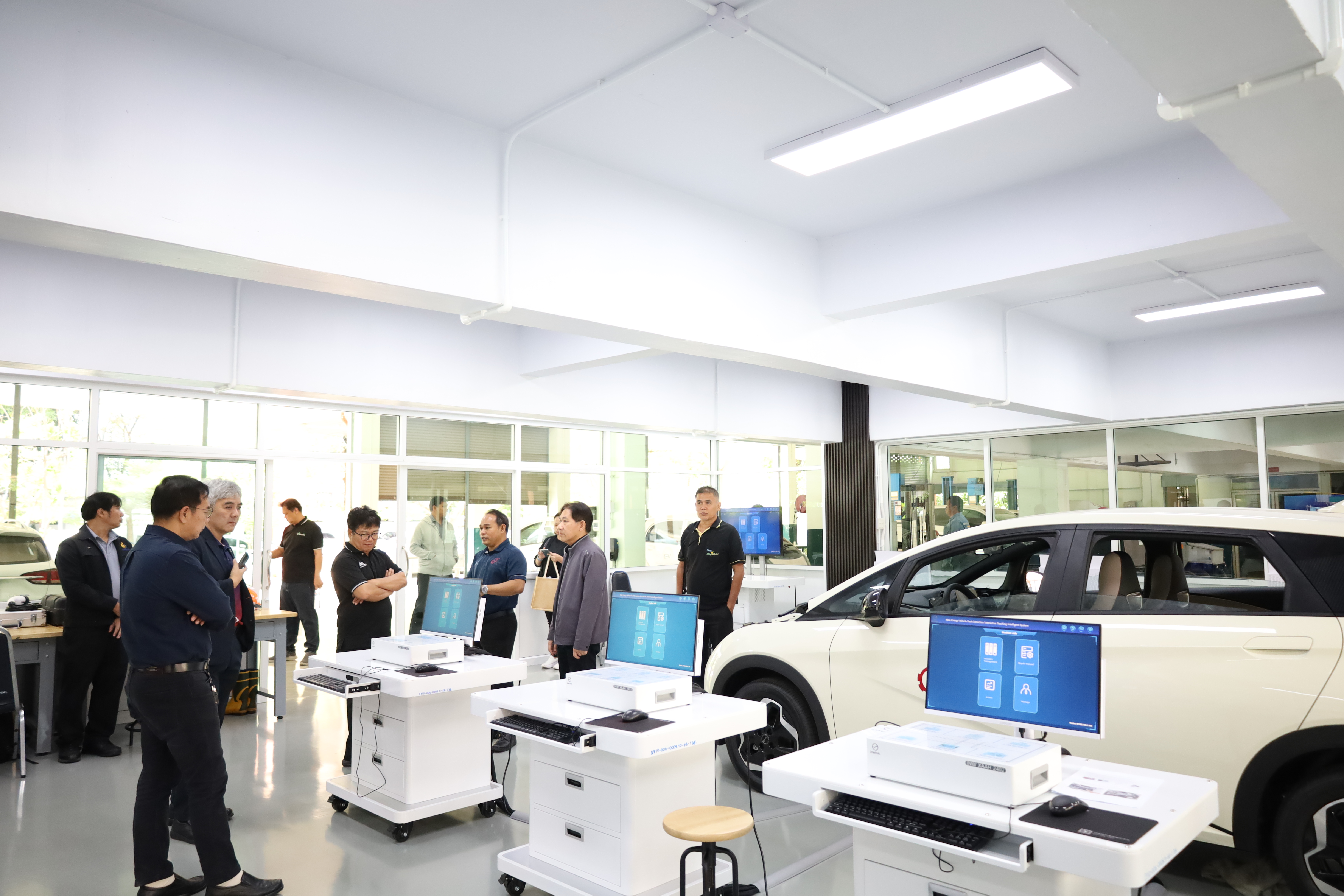 นอกจากนี้ ยังได้เข้าเยี่ยมชม บริษัท ไทย ออโต ทูลส์ แอนด์ ดาย จำกัด (มหาชน) เพื่อรับฟังการบรรยายในหัวข้อ “แนวทางการผลิตกำลังคนด้านวิทยาศาสตร์และเทคโนโลยีสมรรถนะสูงเพื่อตอบโจทย์ประเทศ” จาก ดร.พยุง ศักดาสาวิตร ประธานกรรมการบริหาร บมจ.ไทย ออโต ทูลส์ แอนด์ ดาย และกรรมการสภามหาวิทยาลัยผู้ทรงคุณวุฒิ มทร.สุวรรณภูมิ และมทร.รัตนโกสินทร์ รวมถึงเข้าเยี่ยมชมห้องปฏิบัติการและแลกเปลี่ยนองค์ความรู้ร่วมกับคณะวิศวกรรมศาสตร์และสถาปัตยกรรมศาสตร์ มทร.สุวรรณภูมิ ศูนย์นนทบุรี