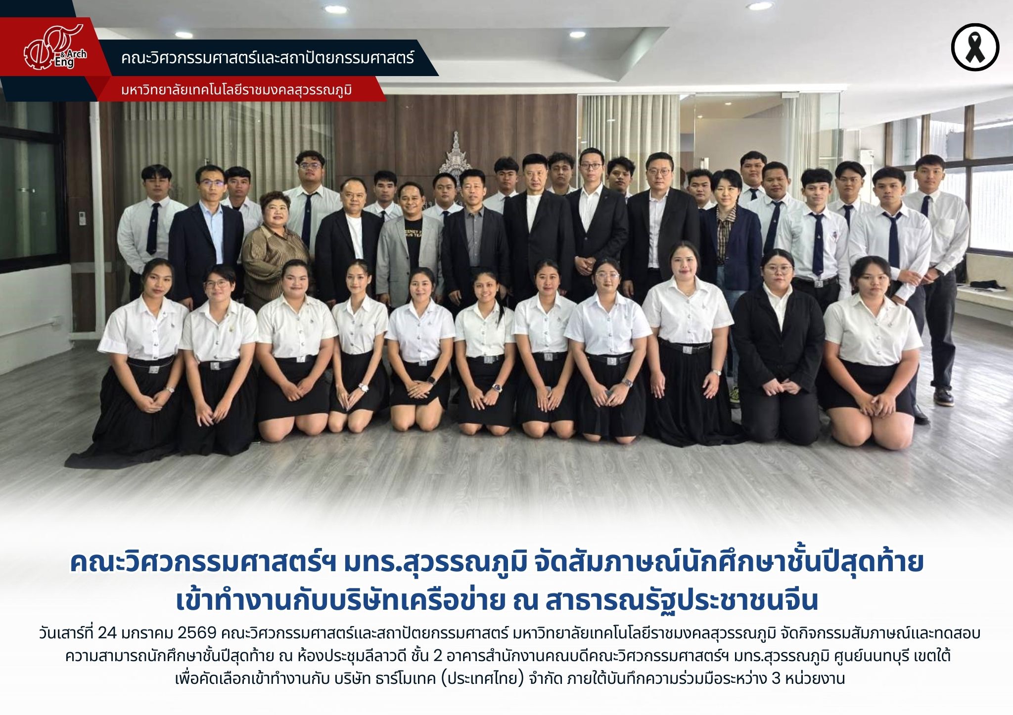คณะวิศวกรรมศาสตร์ฯ มทร.สุวรรณภูมิ จัดสัมภาษณ์นักศึกษาชั้นปีสุดท้ายเข้าทำงานกับบริษัทเครือข่าย ณ สาธารณรัฐประชาชนจีน