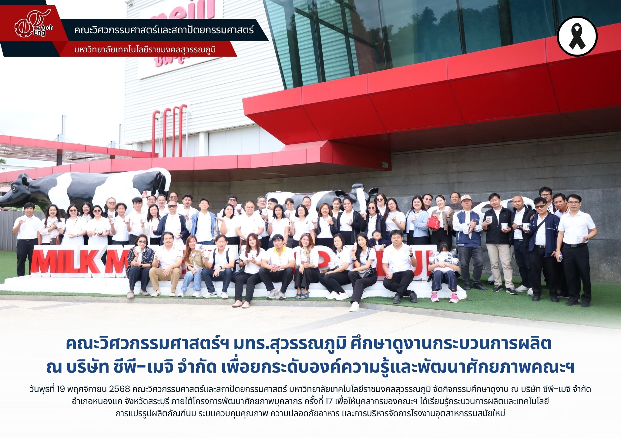 คณะวิศวกรรมศาสตร์ฯ มทร.สุวรรณภูมิ ศึกษาดูงานกระบวนการผลิต ณ บริษัท ซีพี-เมจิ จำกัด เพื่อยกระดับองค์ความรู้และพัฒนาศักยภาพคณะฯ | ครั้ง เมื่อ 1 สัปดาห์ที่แล้ว