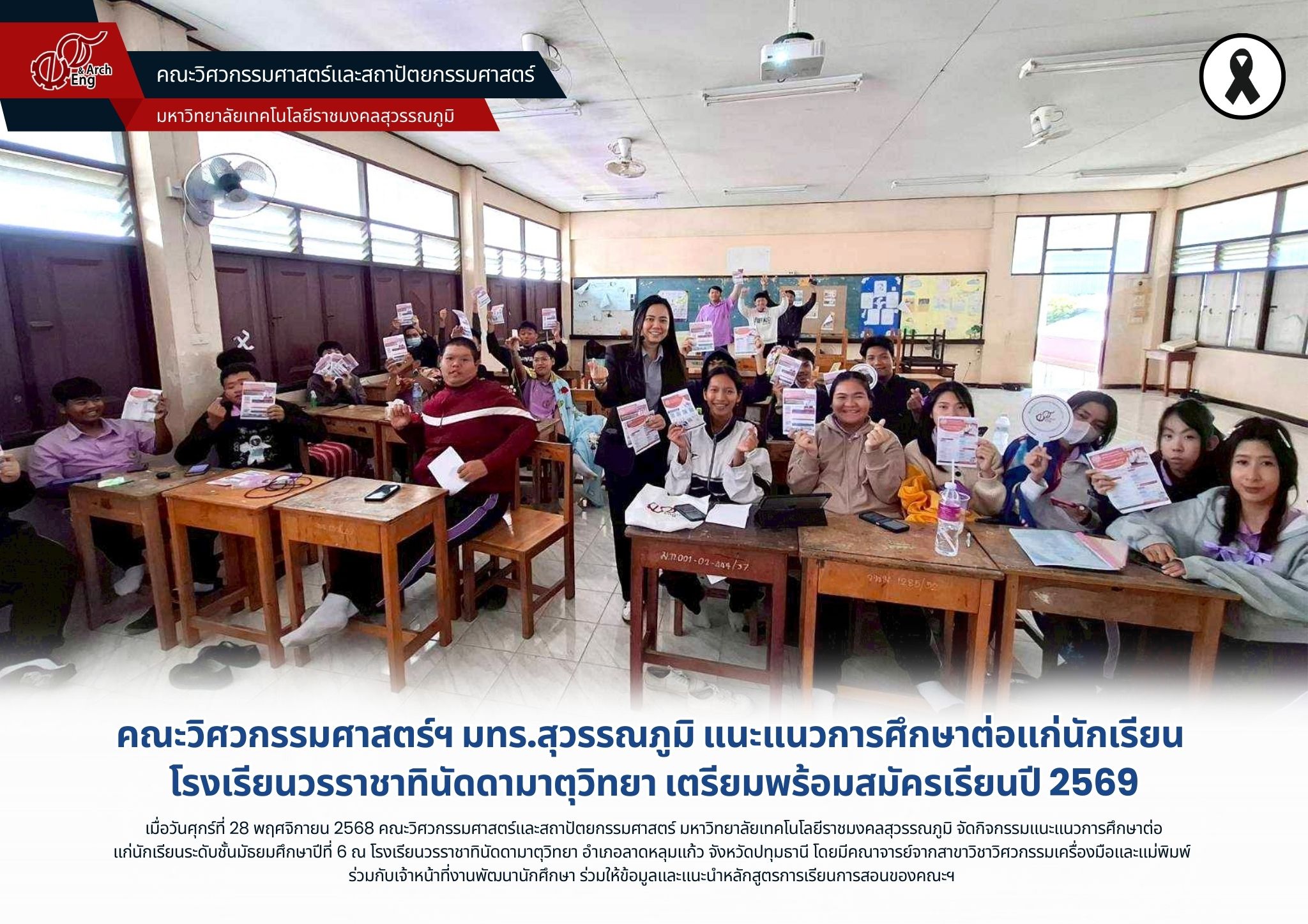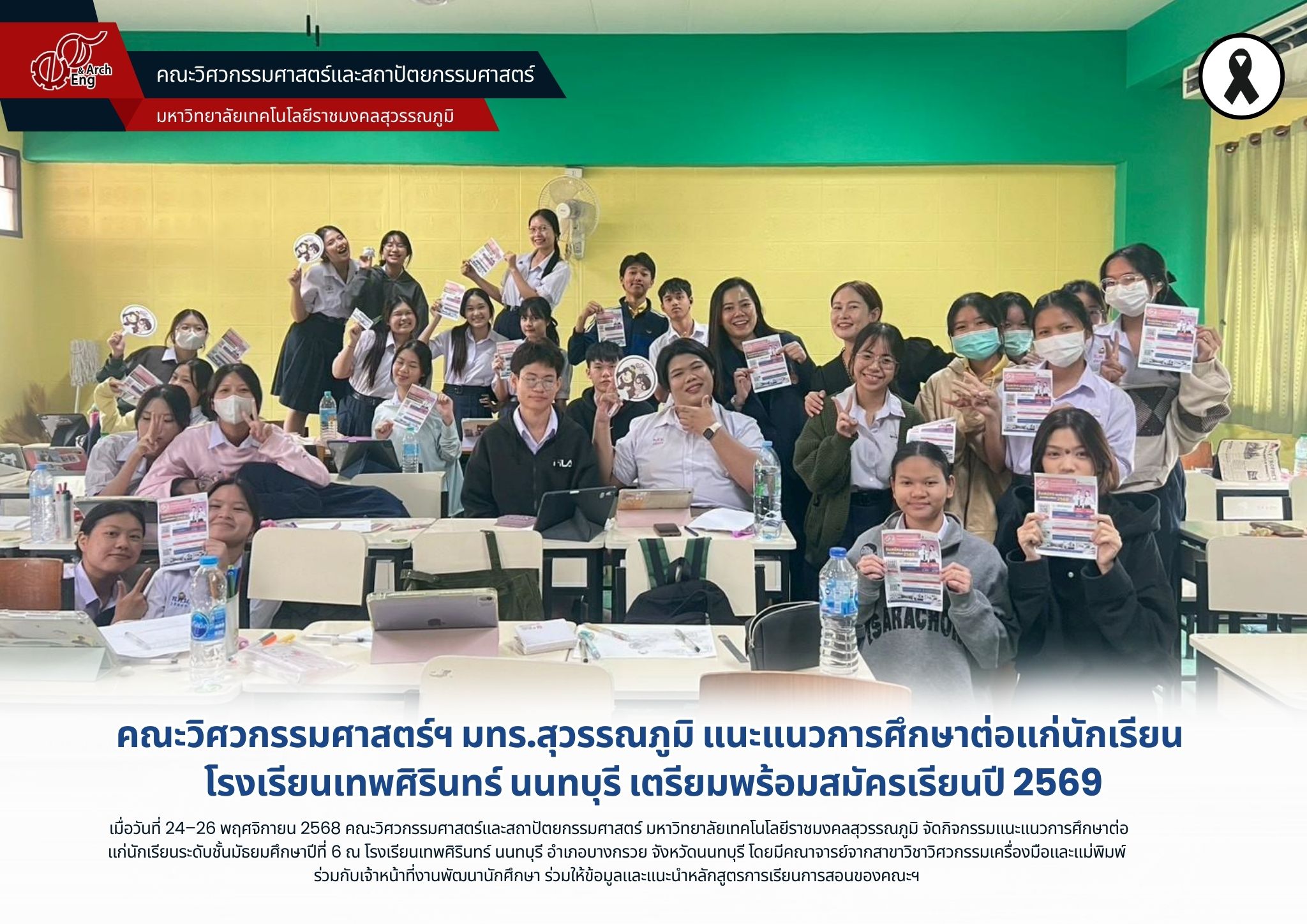 📖 คณะวิศวกรรมศาสตร์และสถาปัตยกรรมศาสตร์ มทร.สุวรรณภูมิ แนะแนวการศึกษาเพื่อประชาสัมพันธ์หลักสูตรการเรียนการสอนของคณะฯ | ครั้ง เมื่อ 1 ปีที่แล้ว